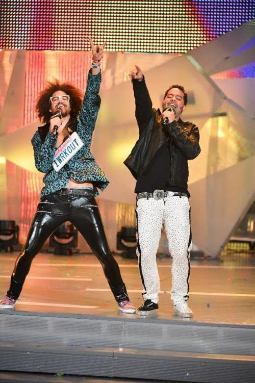 El dúo de electropop recibió una cálida bienvenida cuando ellos abordaron la alfombra roja antes de que empiece el espectáculo, con Redfoo y SkyBlu tomando luego el escenario en la ceremonia como co-anfitriones.
