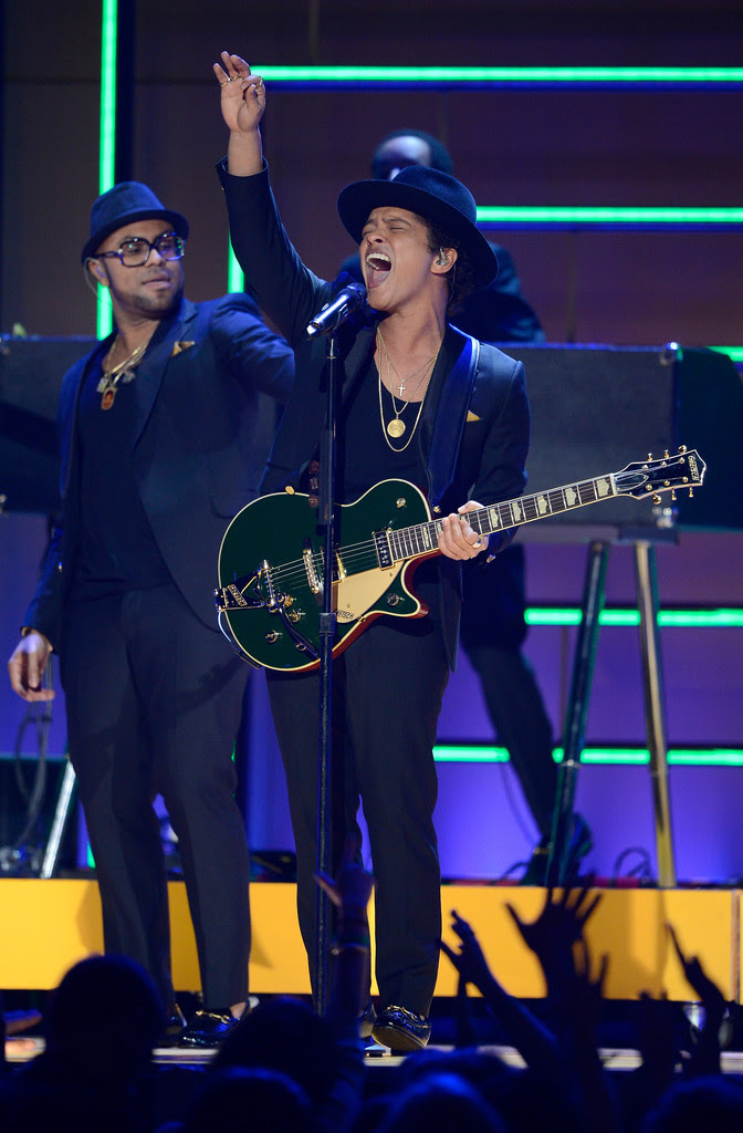 Bruno comenzó el set con una versión de infusión reggae de su tema "Locked Out of Heaven", con Sting, seguido de "Walking on the Moon".